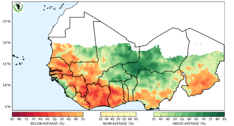 Les prévisions saisonnières sont basées sur une méthodologie objective de nouvelle génération, l’analyse de la situation actuelle et des évolutions probables des Températures de Surface des Océans (TSO), les prévisions des centres climatiques mondiaux et les analyses statistiques des données des Services Météorologiques et Hydrologiques Nationaux (SMHNs) et la connaissance des experts sur les caractéristiques du climat en Afrique de l’Ouest et au Sahel. Sur la base de la référence climatologique 1991-2020, les différentes analyses ont permis d’établir les prévisions suivantes :